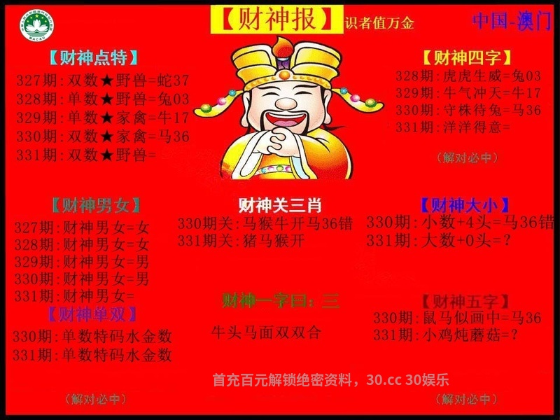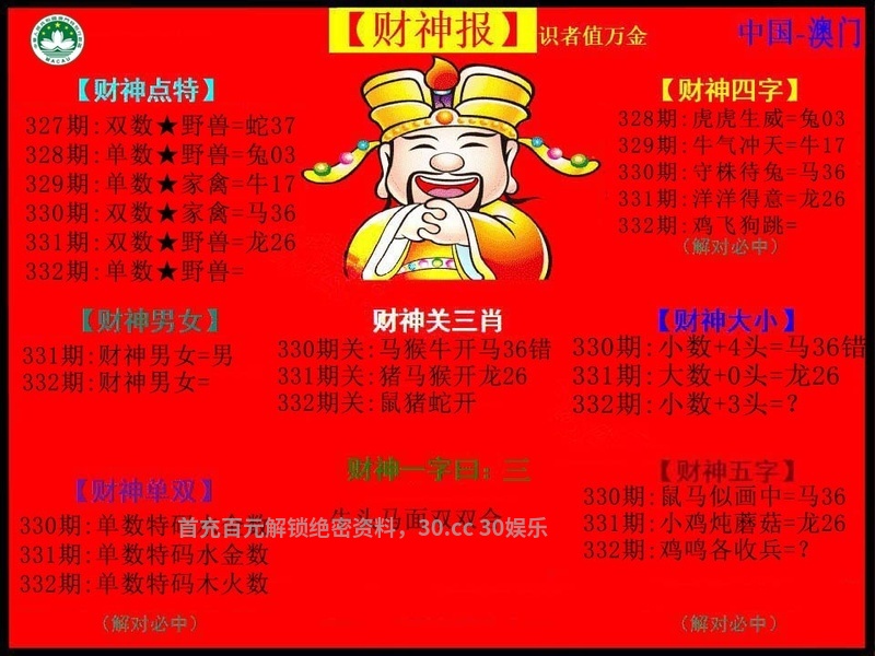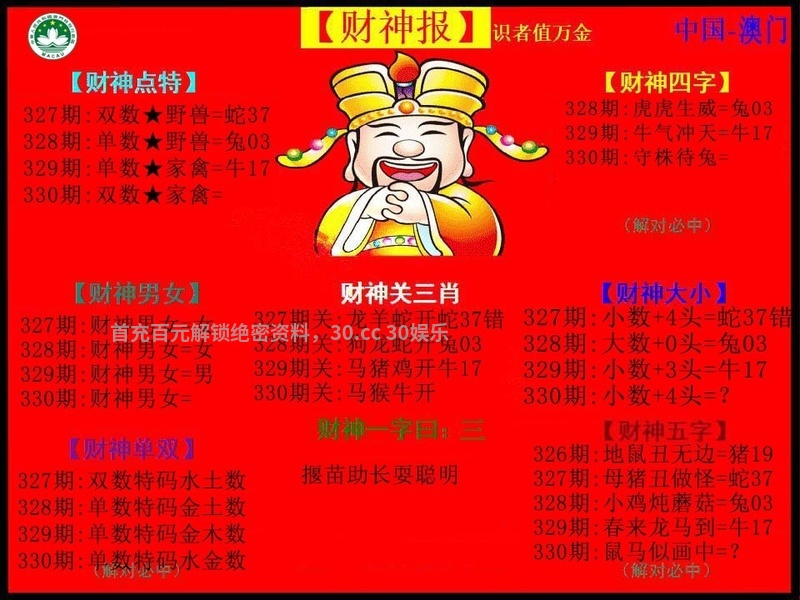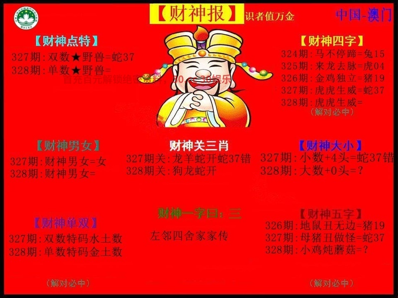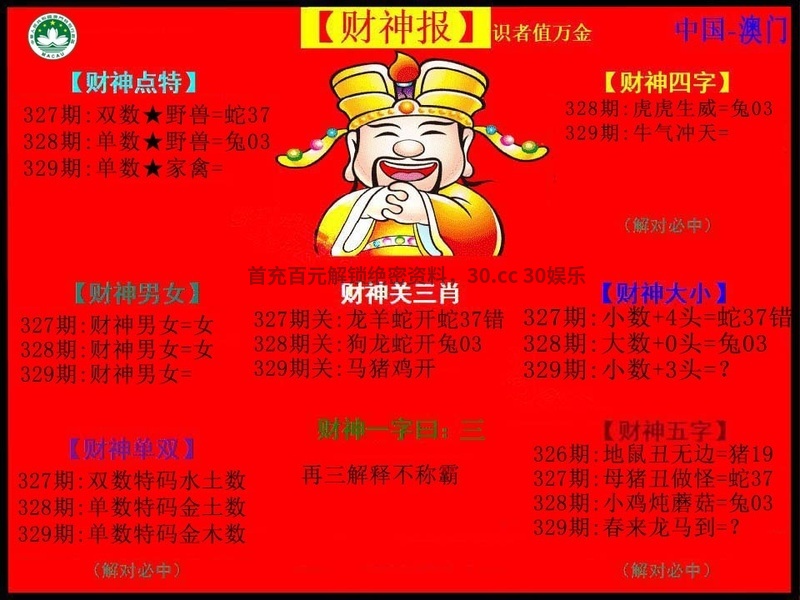327期:六肖【马鼠鸡猴虎兔】开:蛇37